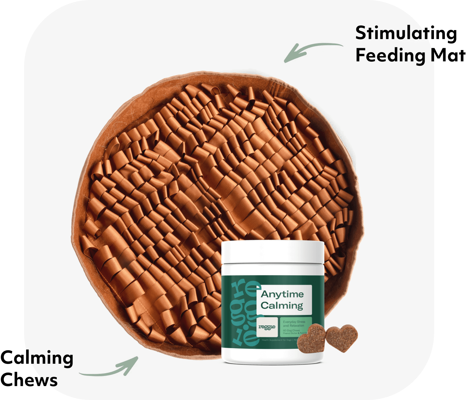 Promote calm and nurture your pup’s well-being with our engaging foraging mat and all-natural, vet-approved chews designed to soothe and relax.