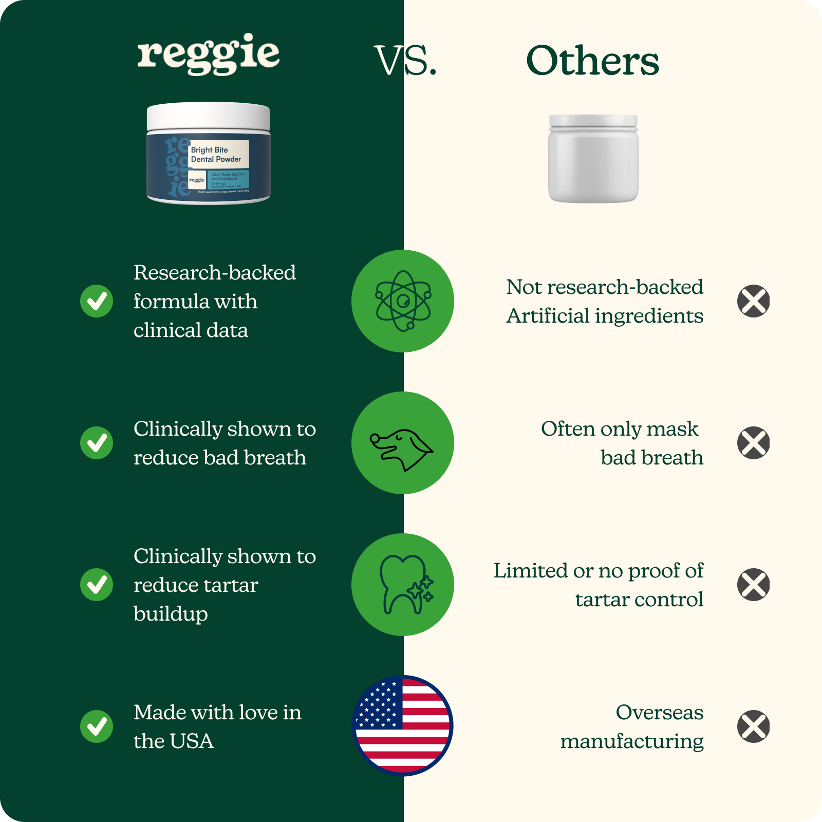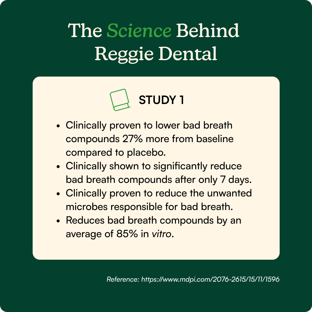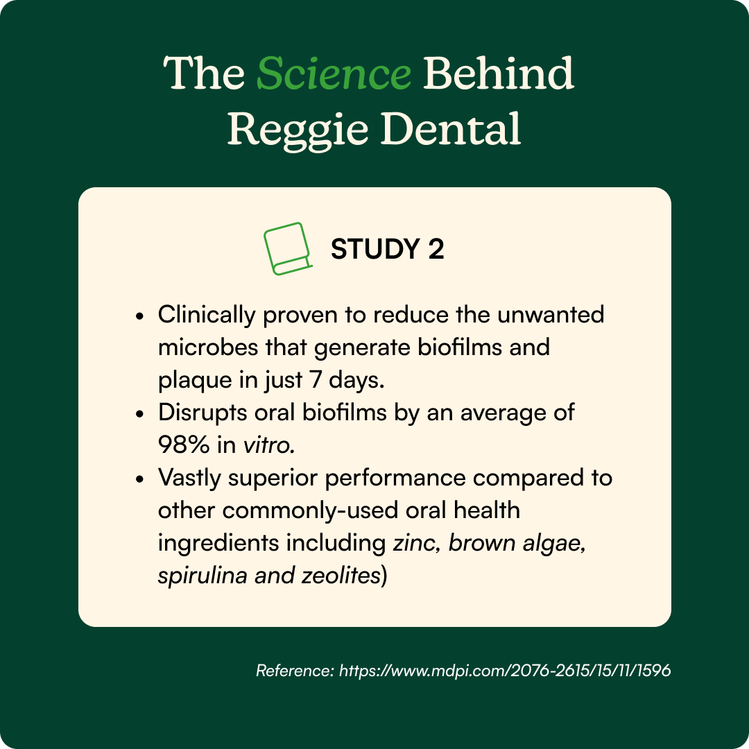 Reduce bad breath and plaque in just 7 days, based on clinical studies. Reggie’s Bright Bite Dental Powder uses a science-backed oral microbiome formula to support healthy teeth, gums, and overall oral health.