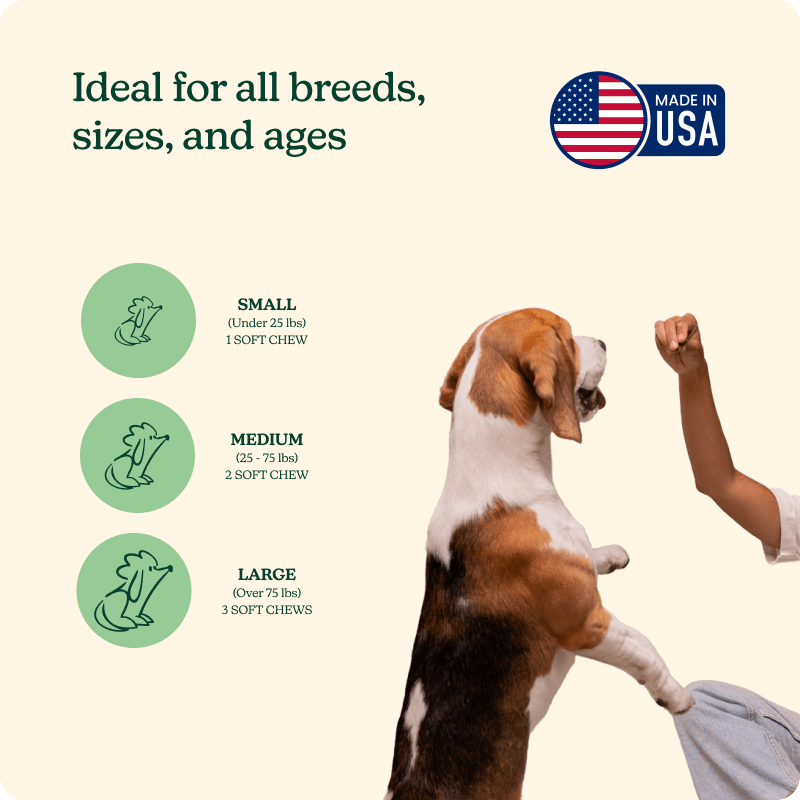 Even the pickiest of eaters love the delicious flavor of our soft chews, making it a breeze to give your dogs their daily dose.