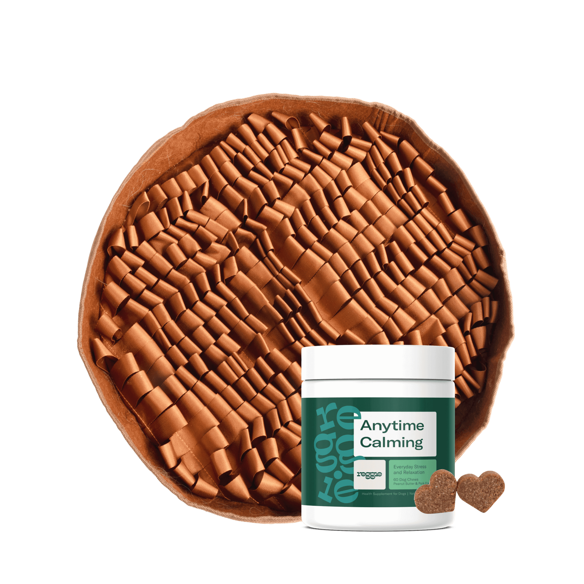 The perfect pairing to keep your dog relaxed and fulfilled. Engage your pup's natural sniffing instincts with our Stimulating Feeder Mat and help them find the calm they need with our all-natural Anytime Calming chews. A complete solution to keep both their mind and body at ease!